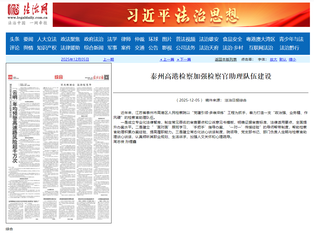 近年来,江苏省泰州市高港区人民检察院以“党建引领·多维淬炼”工程为抓手,着力打造一支“政治强、业务精、作风硬”的检察官助理队伍。